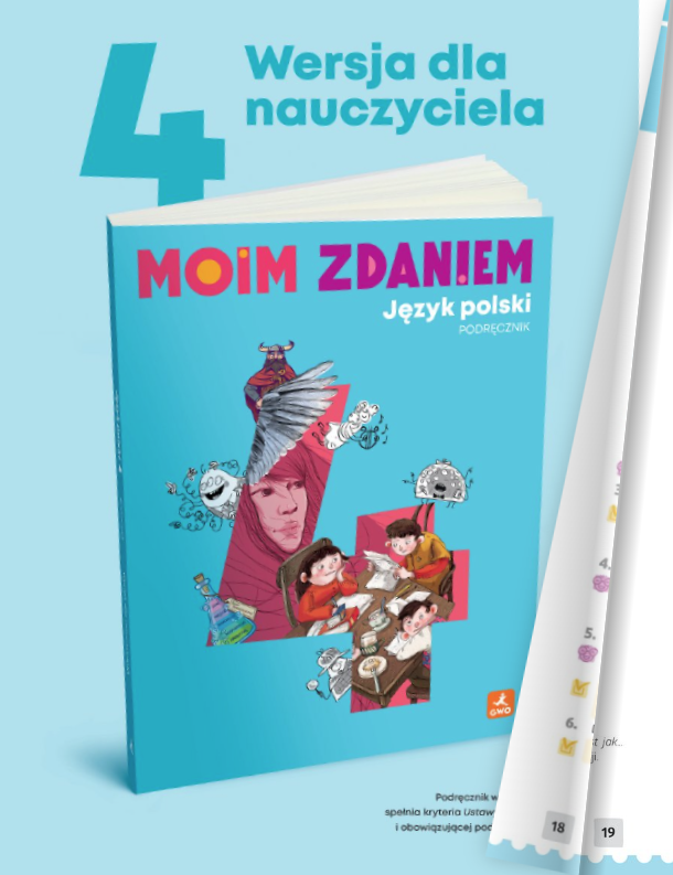 Przedstawiamy Państwu fragmenty nowego podręcznika GWO do nauki języka polskiego dla uczniów klas 4. Jest on zapowiedzią i pierwszym elementem nowej serii Moim zdaniem, która wejdzie do użytku szkolnego w roku 2026 wraz z nową podstawą programową.