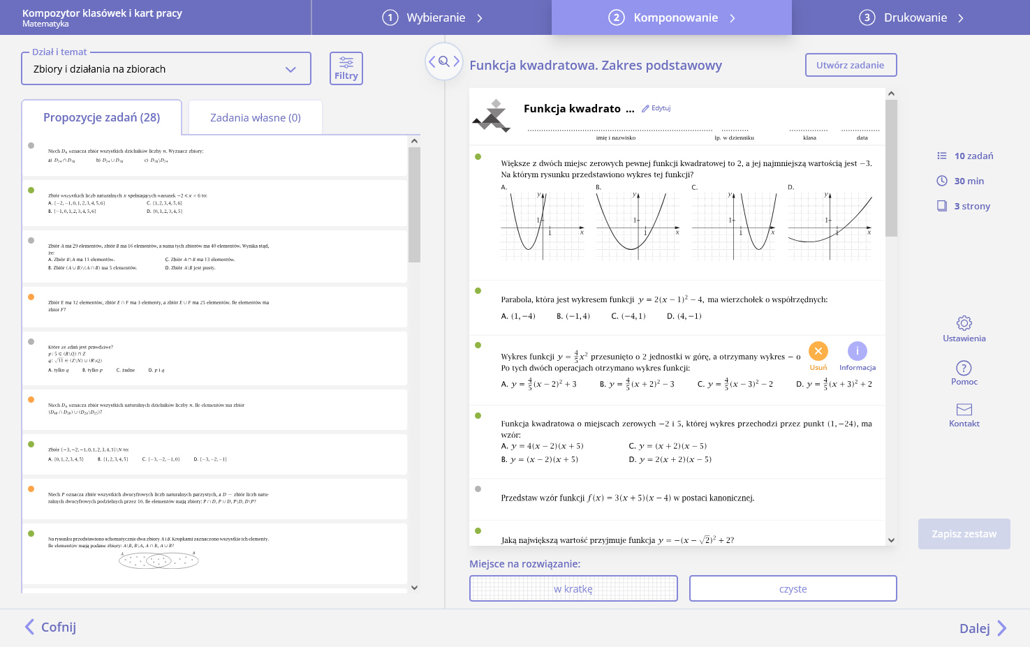 Kompozytor klasówek i kart pracy. Matematyka