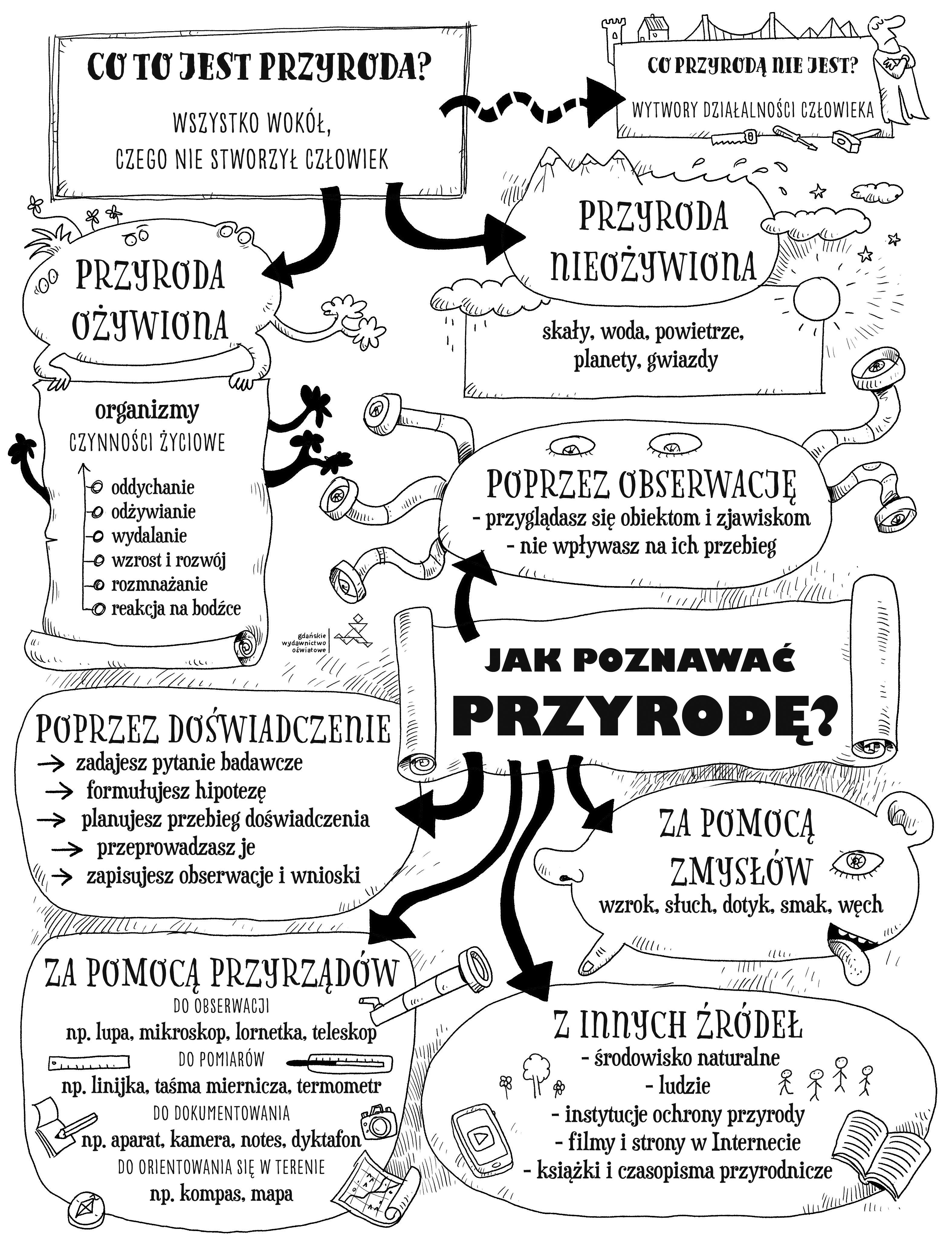 Szukasz niebanalnego podsumowania materiału z przyrody? Polecamy sketchnotki – wiedzę w pigułce, usystematyzowaną i przedstawioną w formie rysunkowych wykresów. Przydadzą się na przykład jako szybka powtórka. Są bardziej atrakcyjne i łatwiej przyswajalne niż jednolity tekst. Ich obrazkowa forma ułatwia zapamiętywanie wiadomości.