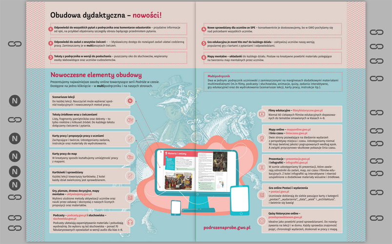 Podróże w czasie zmieniają się na lepsze, zachowując sprawdzone, wartościowe wzorce. Nauczyciele, którzy wybiorą nową serię, nie stracą nic z dotychczasowej obudowy dydaktycznej – wszystko zostaje, a jednocześnie zostaje dostosowane i wzbogacone o nowe materiały.