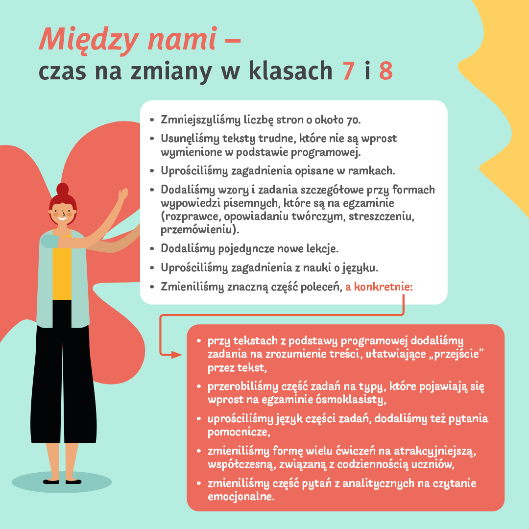Nowe Między nami – seria z tradycjami, ale też świeżymi pomysłami na pracę w dzisiejszej szkole. Otwarta na możliwości uczniów i wspierająca nauczycieli nowymi rozwiązaniami. Seria została zmodyfikowana, ulepszona